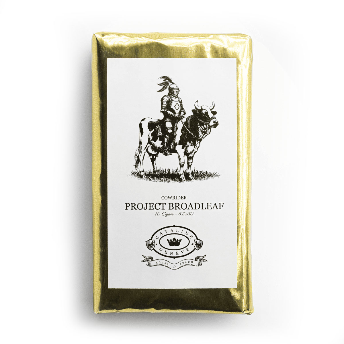 Project Broadleaf Cowrider 6.5x50, a Connecticut broadleaf wrapper covering a Connecticut Shade binder and filler tobaccos from Honduras, Nicaragua and Indonesia. The Connecticut broadleaf wrappers used in these cigars have undergone fermentation for up to three years as well as an additional year of aging in bales between fermentation stages.