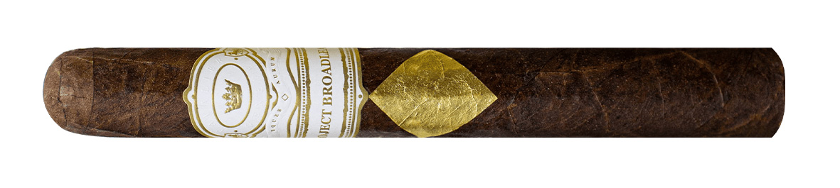 Project Broadleaf Skywalker 6x48, a Connecticut broadleaf wrapper covering a Mexican San Andrés binder and filler tobaccos from Honduras and Nicaragua. The Connecticut broadleaf wrappers used in these cigars have undergone fermentation for up to three years as well as an additional year of aging in bales between fermentation stages.